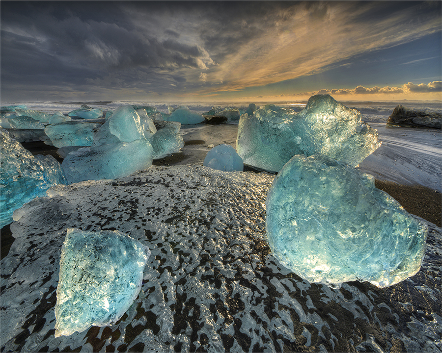 The Icelandic Photographic Workshop came to a close with an unbelievable storm that swept up from the South and hit the coastline with winds of gusts up to 173 kms an hour! The group took shelter in a large farmhouse built with stables and training area on the ground floor. Six hours later towards evening they re-opened the road and we continued onto our last hotel for this journey. Between the fronts of weather we had the opportunity to spend about 5 hours photographing the superb icebergs that are scattered on the beach at Jokulsarlon. What made this more of a challenge was the fact that the first storm from which we all sheltered had kicked up the waves into a frenzy. With amazing back-lighting and cloud formations in the southern Skies we all worked to capture the unbelievable site along the coastline. this was the grand finale… and a beautiful one! A big thanks to all the lovely participants of this workshop… Greg and Val Earl, Ann Alcock, Pam Rixon, Linda Herd, Victoria Bell, Peter and Margaret Walton, Murray and Judy McEachern… and of course my great workshop mate Ewen Bell…a special thanks… it was a phenomenal trip and will not be easily forgotten by those who attended it.