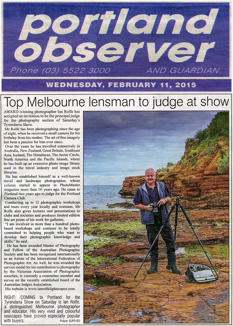 I was asked to travel down to Portland and be the official Judge for the Photographic section of the Tyrendarra Agricultural show over the last weekend. Huge selection of local photography from the youngsters and upwards to the Adults… 15 sections to Judge in all, and it went off extremely well. Had a great time with the local folks and they did me the honour of announcing my presence over the weekend. A big thank you to the hospitality and friendliness of all concerned.